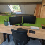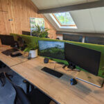 Wij mochten hier de elektrisch verstelbare duo-benches plaatsen in combinatie met de groene akoestische scheidingswanden. Dit maakt een mooi geheel met de houten wand van Engberts Hoveniers en de vele planten die in het kantoor zijn geplaatst.